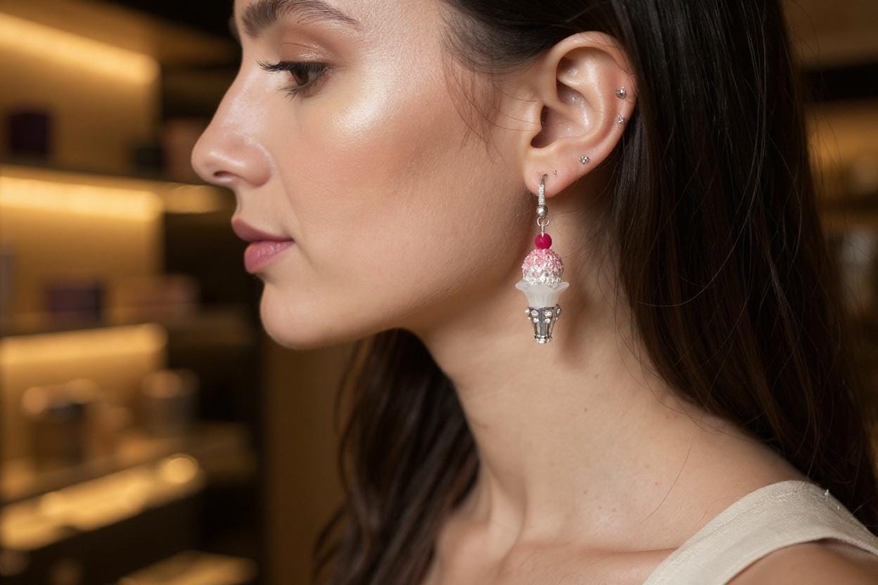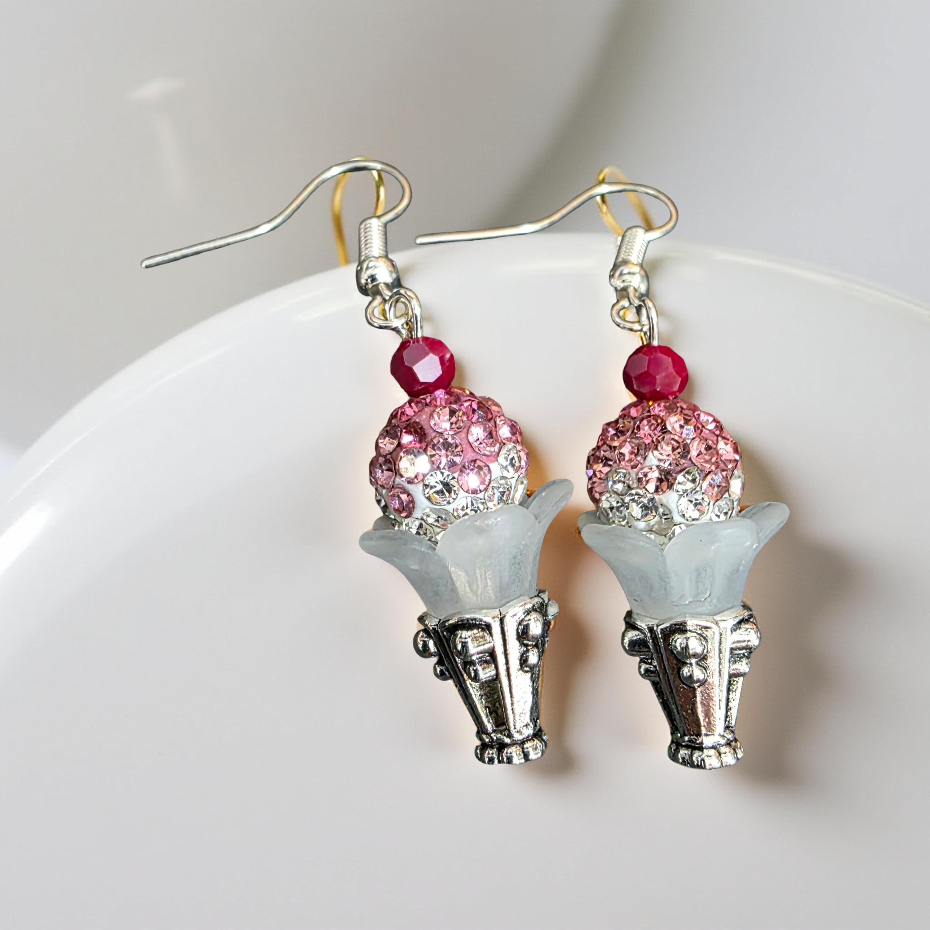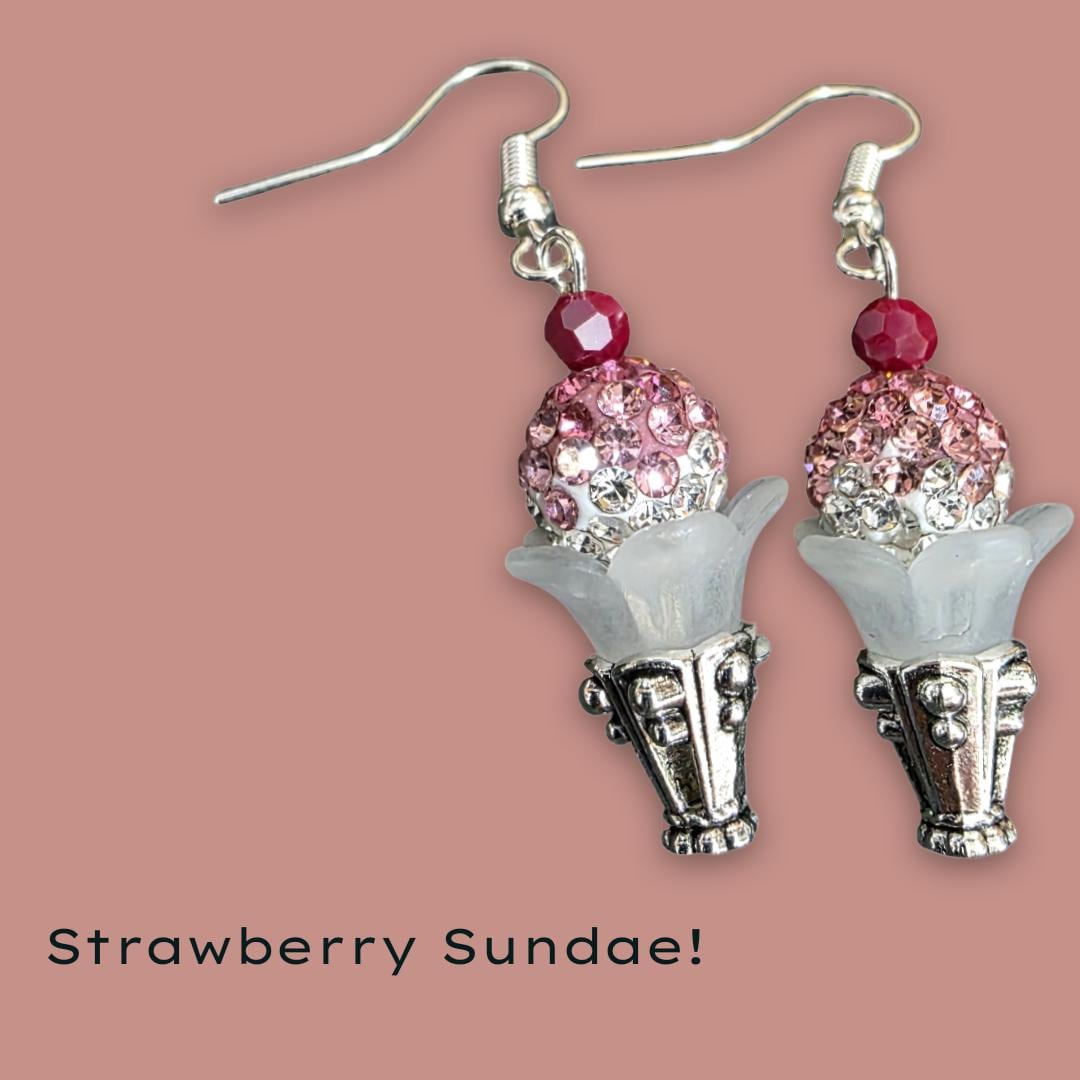 Cute strawberry sundae dangle earrings handmade by Pretty Bead Dezigns! See more designs at: prettybeaddezigns.com