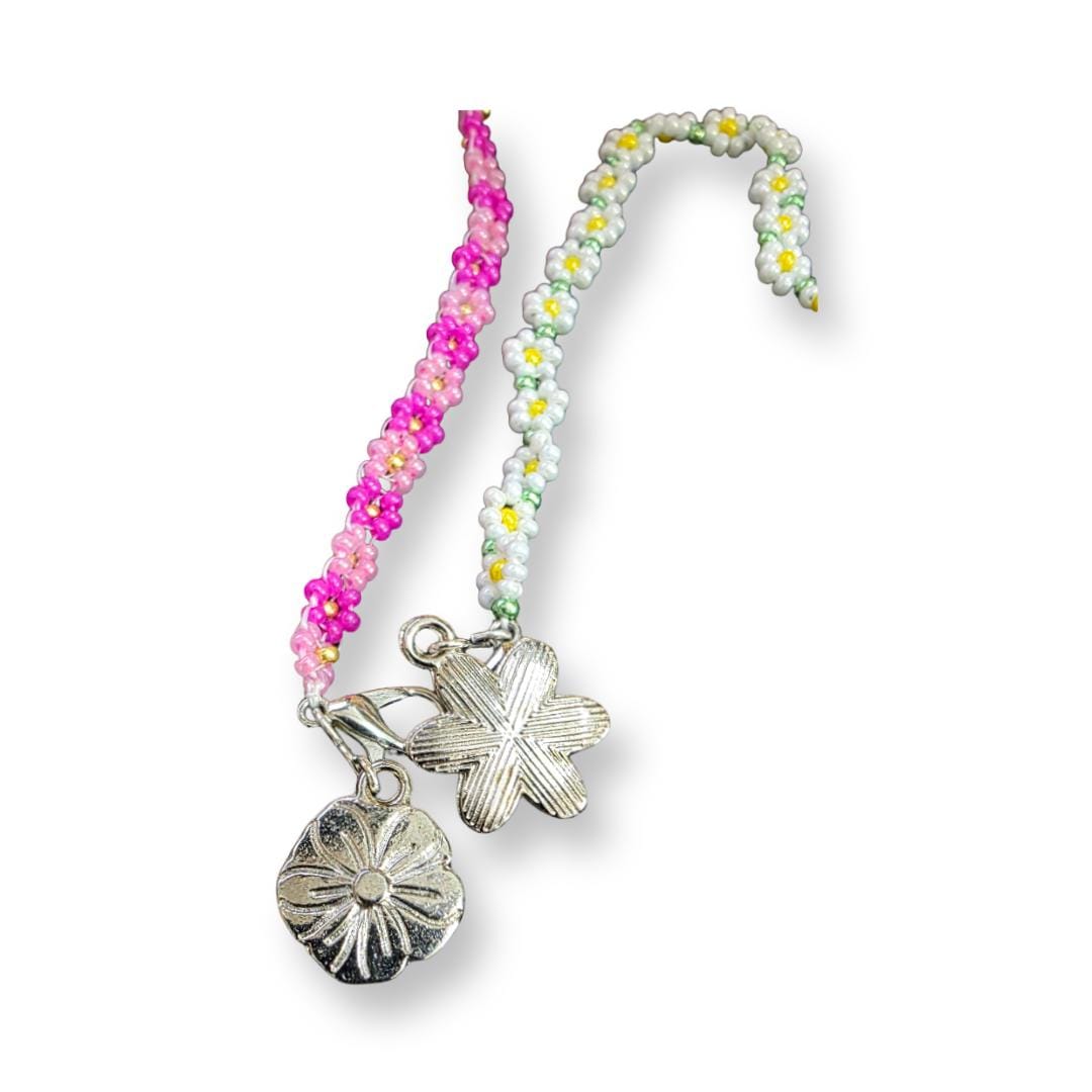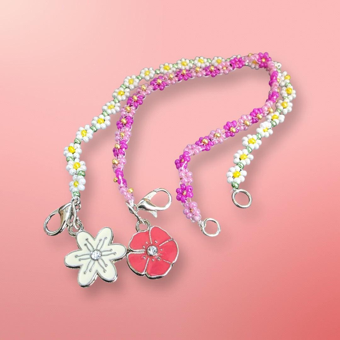 A delicate little pair of daisy bracelets, both hand-sewn using 11/0 Czech glass seed beads, 7 inches long with a lobster clasp. See more designs at: prettybeaddezigns.com